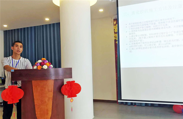 技術(shù)部劉軼麟先生在會(huì)上對(duì)公司原有產(chǎn)品的改良做了詳細(xì)的講解說明,同時(shí)發(fā)布了新的產(chǎn)品,還對(duì)各種產(chǎn)品施工的細(xì)節(jié)與大家做了交流探討。