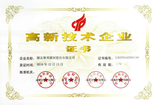 2016年12月13日,魯邦公司被認定為國家高新技術企業(yè),獲得由湖北省科學技術廳、湖北省財政廳、湖北省國家稅務局、湖北省地方稅務局聯(lián)合頒發(fā)的《高新技術企業(yè)證書》。獲得國家高新技術企業(yè)認定給了我們很大的鼓舞,也是對于魯邦公司的一種肯定。創(chuàng)新是企業(yè)發(fā)展的根本動力,魯邦將堅持走自主創(chuàng)新、持續(xù)創(chuàng)新的發(fā)展道路,提高科技創(chuàng)新能力,持續(xù)進行研究開發(fā)與技術成果轉化,形成企業(yè)核心自主知識產權,使公司和產品更具競爭力,讓企業(yè)持續(xù)健康發(fā)展,取得更好成績。